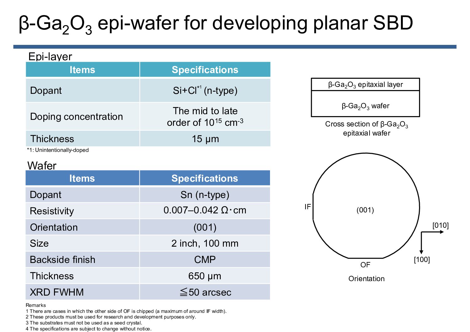 β-Ga₂O₃ epi-wafer for developing planar SBD